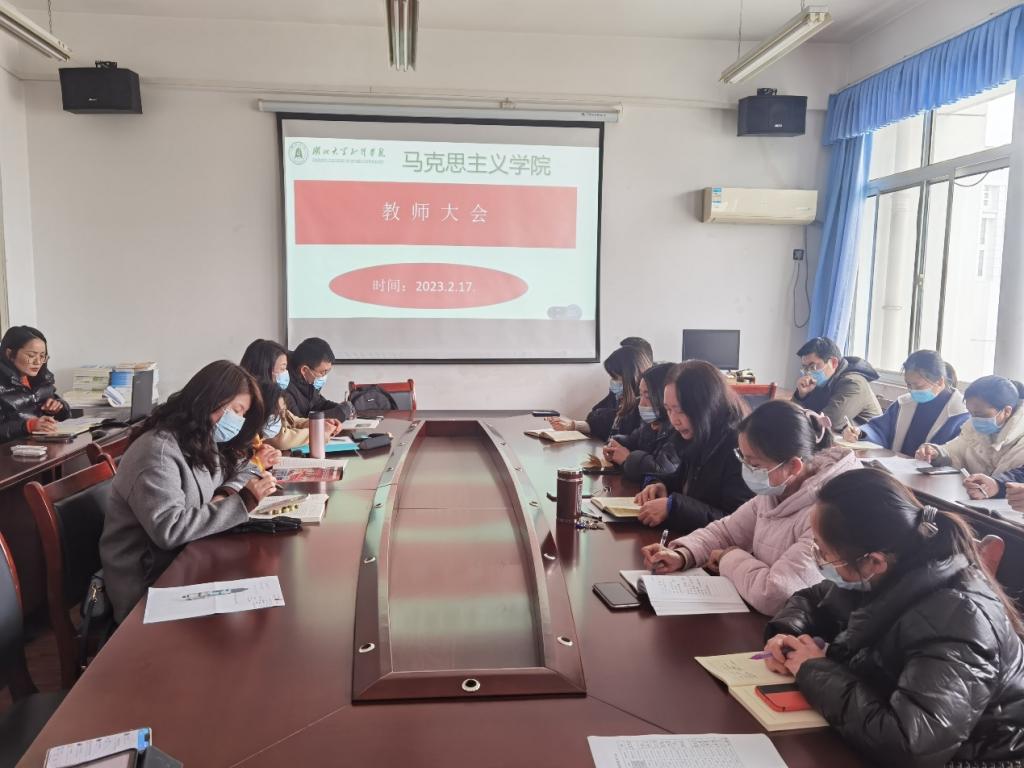 会上,杨院长及时准确的传达了学校的会议精神,三年疫情过后迎来崭新的春天,在这个充满希冀的季节里,校领导对广大教职工提出的要求更高,更远。杨院长希望老师们要“敢于播梦,善于逐梦",确立梦想后,脚踏实地,为实现梦想努力奋斗。同时也充分肯定开学第一周本院教师教学工作,对年轻教师赋予了更多的期待,年轻教师是学校的未来,在上好课的同时,多探究科研课题,踊跃参加学校组织的各类教学活动,对学校即将组织的青年教师教学比赛,本院16位青年教师要认真准备,通过比赛提升教学技能,在学校搭建的这个平台展示自身的价值,早日成为教坛新秀,为学校长足的发展贡献更多力量。
