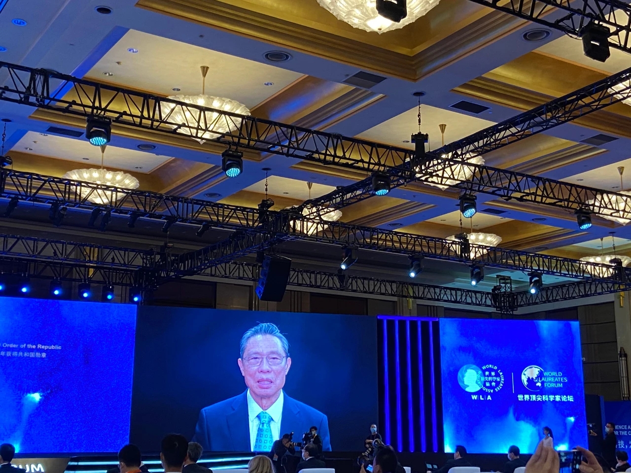 钟南山发表视频演讲。图 澎湃新闻记者贺梨萍他认为,顶尖奖项的得主应真正成为人类社会的服务者,让科学服务于大众。