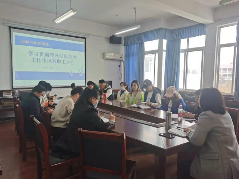 为落实学校“四风”建设的工作要求,形成良好校园环境,OK138太阳集团思政与体育课部于11月17日下午1时在学校知远楼408会议室召开学习贯彻教风学风考风工作作风教职工大会,思体部全体教师参与此次会议。