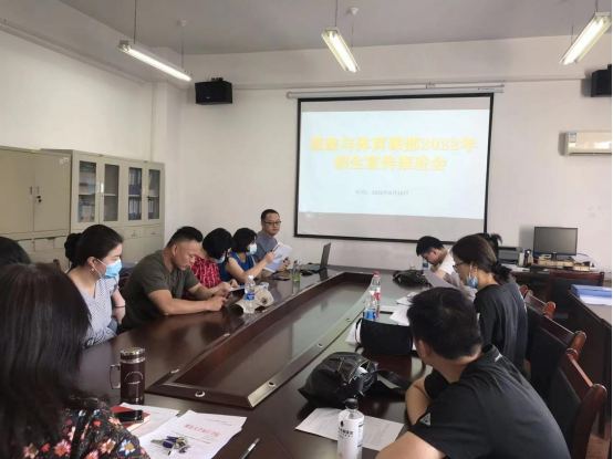 为更好地开展2022年招生宣传工作,有效提升部门教师参加学校招生宣传工作的质量,6月16日上午,思政与体育课部在知远楼408会议室召开2022年招生宣传工作推进会,特邀请学校招生就业处副处长张进为全体教师做招生宣传专题培训,部门全体教师参加。会议由部门主任杨旭主持。