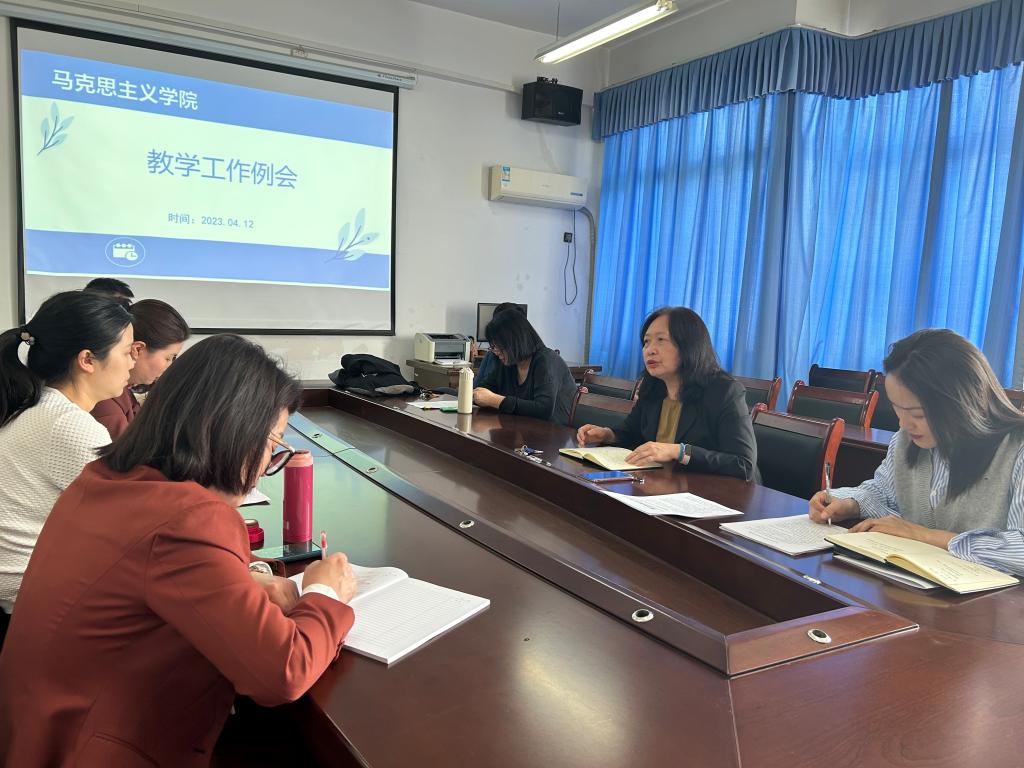 最后,杨院长充分肯定了近阶段学院教学工作,针对老师们提出的教学相关问题,学院会及时进行整理上报,及时跟进问题解决。杨院长强调:一要加强学习,及时准确把握教育部、教育厅和学校对思政课教学工作的新部署和新要求,明确目标任务,强化举措,确保教学各项工作落细落实。二要加强规范,规范课堂教学秩序,提高课堂教学效率和质量,树立良好的教风、学风。三要加强引领,教研室主任作为教学管理的负责人,带领老师们深入学习二十大精神,做到学用结合、学以致用,把党的二十大精神融入到教育教学管理全过程,科学谋划本学院发展的战略举措,全面落实立德树人根本任务。 四要推进教学诊改,全体教师要对标对表全面落实诊改各项工作,保障期中教学检查质量。