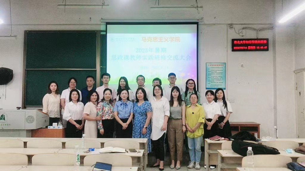 为加强教师之间的交流,推进思政课改革创新,传播新时代党的创新理论,讲好思政课,9月14日,我院在知新楼411教室召开了2023年暑期思政课教师实践研修交流大会,就暑假期间思政课教师分批次赴甘肃省、湖北省委党校、湖北经济学院、广州市等地参加全国、湖北省及学校组织的思政课教师实践研修等进行深入交流研讨。马院全体专兼职教师参加了交流大会,分管校领导钟春敏校长、教务处副处长徐江涛莅临现场做了交流指导,会议由杨旭院长主持。