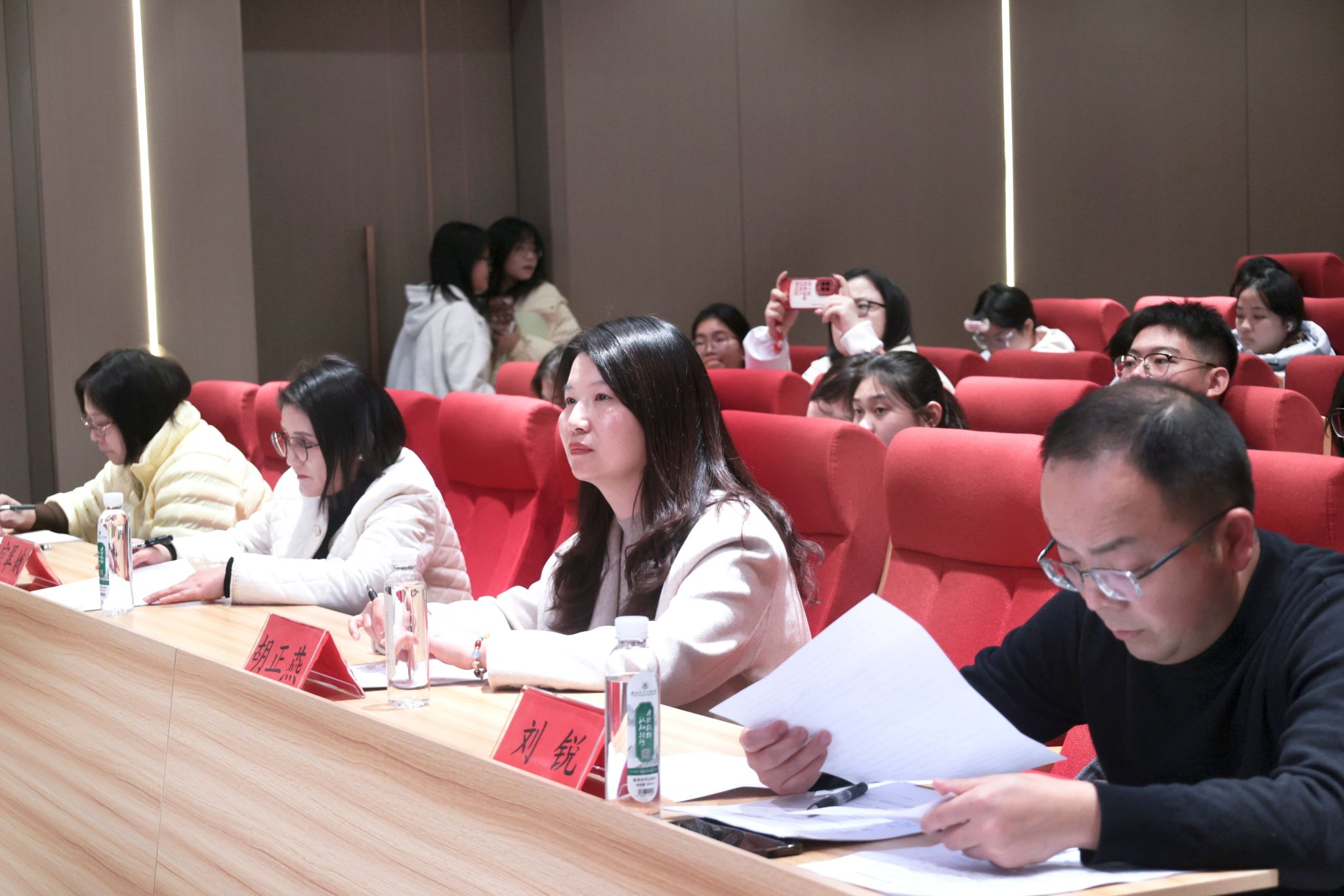 本次活动邀请党委宣传部部长刘锐、校团委书记吴瑛、学院副院长胡正燕,以及思政教研室主任边塞、新思想教研室主任官翠娥、专业教师代表李华琼、汪丽君组成评委团,从思想内涵、创意表现、技术呈现等维度对参赛作品进行专业评审。
