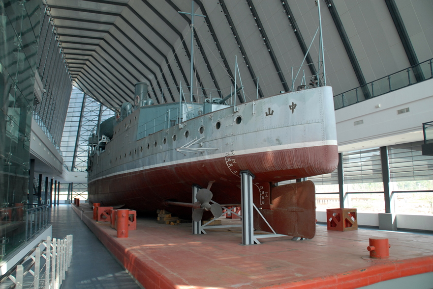 中山舰,原名永丰舰。1910年由清政府向日本订购,1912年6月建成下水。1913年加入中国北洋政府海军第一舰队。1922年6月孙中山先生在“广州蒙难”时登临该舰,指挥平叛斗争长达50余天。1925年3月,孙中山先生去世后,为纪念孙中山改名为中山舰。1938年10月,在“武汉保卫战”中于长江金口水域被日机炸沉。中山舰自加入中国海军以来,历经“护国运动”、“护法运动”、“孙中山广州蒙难”事件、“中山舰事件”和“武汉保卫战”等五大历史事件,是中国近现代史特别是国民革命史上重要的历史见证物。