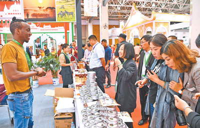 9月26日,由农业农村部、中华全国供销合作总社、河北省人民政府主办,以“科技、绿色、品牌、质量”为主题的第二十二届中国(廊坊)农产品交易会在河北省廊坊市举办。本届农交会聚焦实施乡村振兴战略,以“展示成果、推动交流、促进贸易”为办展宗旨,吸引了“一带一路”参与国家踊跃参展,参展企业达1000多家。图为南非展区吸引不少参观和选购者。