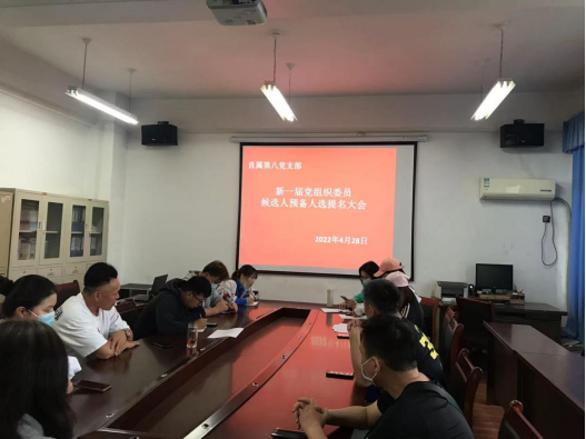 2022年4月8日中午12:45,直属第八党支部在知远楼408会议室召开全体党员大会,对新一届委员候选人预备人选提名,并开展安全教育主题党日会议,会议由支部书记杨旭主持,全体党员参加。