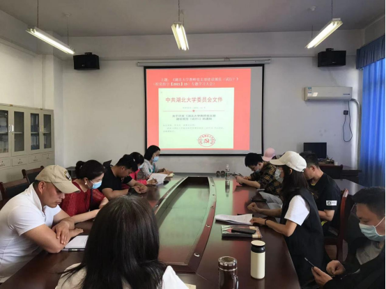 会议另一个主题是专题政治学习会议。首先杨旭主任带领全体党员同志学习了《湖北大学教师党支部建设规范(试行)》文件。会上全体党员同志们都踊跃发言,普遍深刻认识到规范化建设教师党支部的重要性,规范化建设教师党支部能增强党员对支部的高度认同感和更强的归属感,思体课部党支部更有凝聚力,更具影响力,党支部力量更加坚实,氛围更加良好,战斗堡垒作用更强。认为要强化政治理论学习,积极参与思体课部党支部党日活动,努力提升自己的政治素养,做一名合格的教师党员。