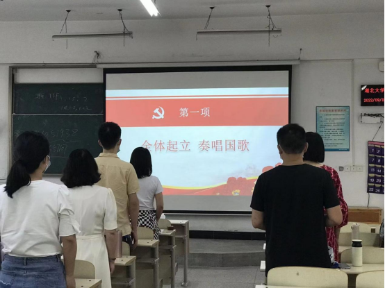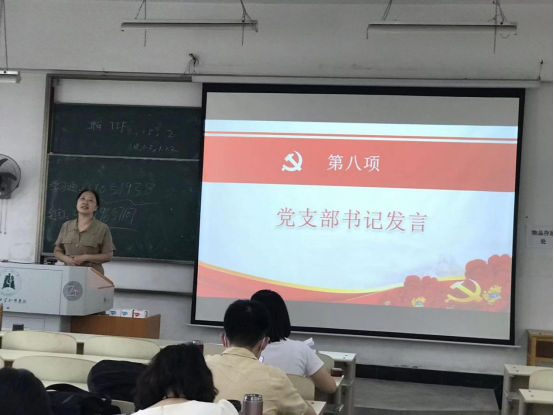 最后,支部书记杨旭作总结,对金富巽同志表示祝贺并提出了要求和中肯的建议与希望,希望他牢记入党初心使命,深入学习党史,也向支部全体党员发出号召,希望大家牢记入党誓言,在工作中充分发挥先锋模范作用,以实际行动努力争做学校发展的促进者、爱岗敬业的排头兵。