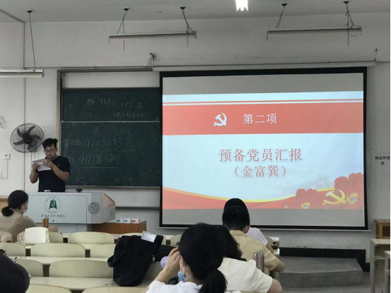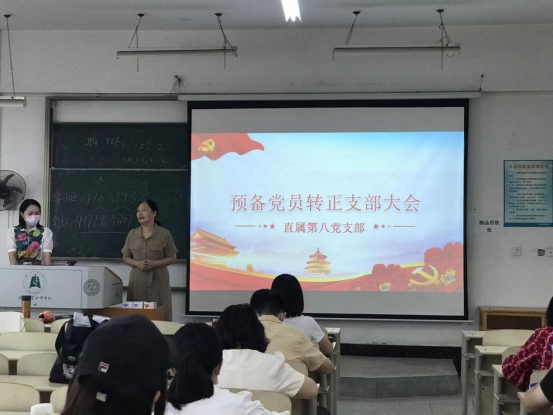 2022年9月7日下午2点,直属第八党支部在4教209教室召开全体党员大会,讨论预备党员金富巽同志的转正问题。会议由支部书记杨旭主持。