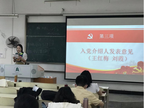 支部纪检委员胡正燕同志代表支部委员会报告了金富巽同志预备期间的教育考察情况。支部委员会认为,该同志在预备党员期间,积极向党靠拢,认真履行党员义务,在思想上、行动上和党组织保持了高度一致,表现优秀,经全面系统认真考察,符合预备党员转正的条件。经全体党员评议并无记名投票表决,同意金富巽同志转为正式党员。
