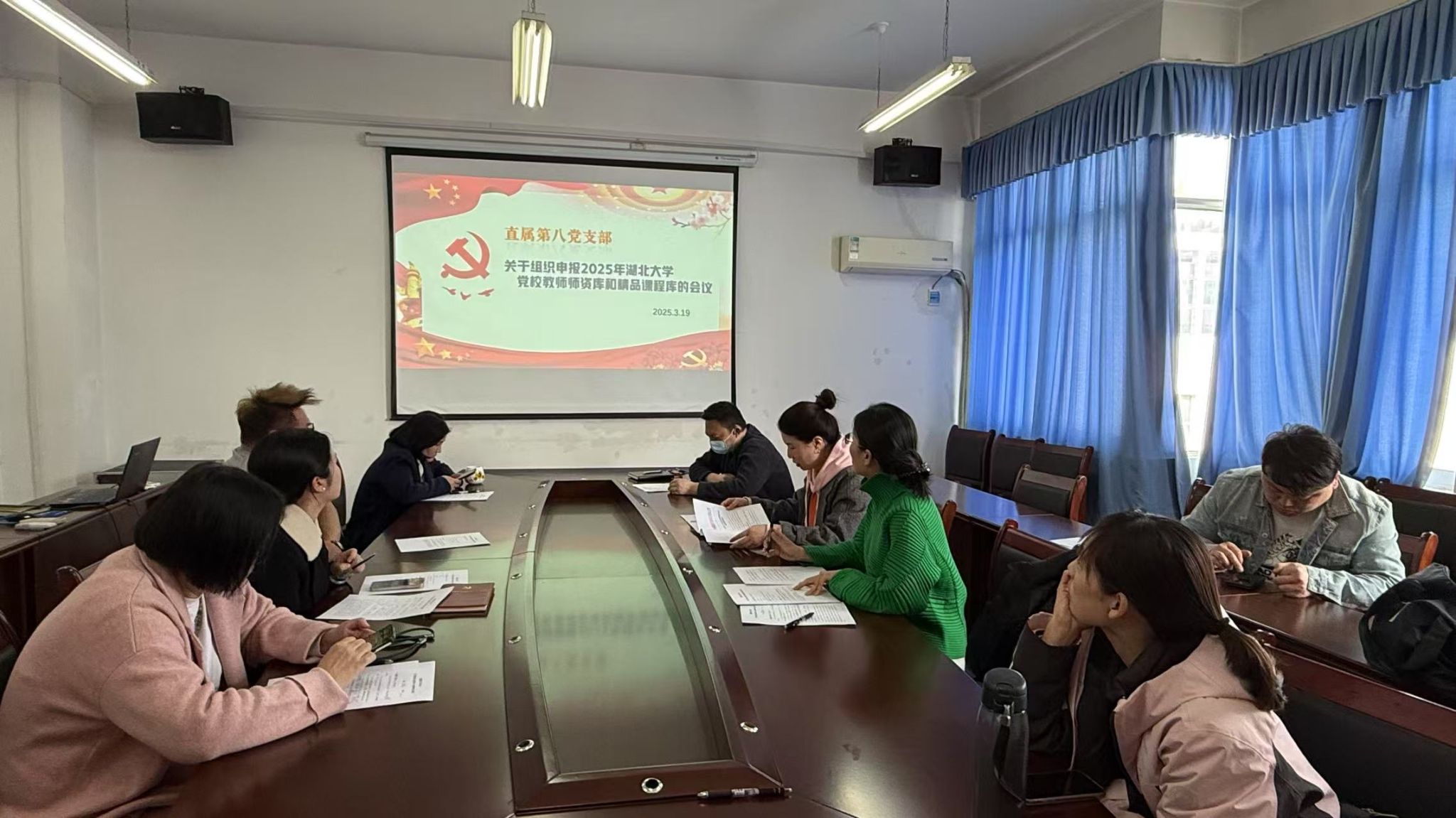 直属第八党支部召开关于组织申报 2025年湖北大学党校教师师资库和精品课程库的会议