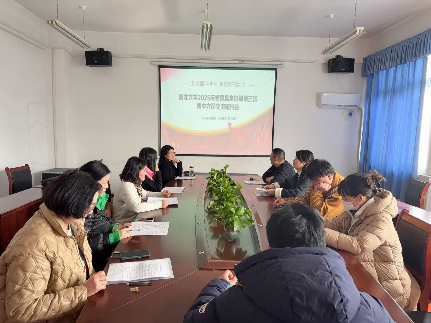 此前,学校于12月12日下午组织开展湖北大学2025年党员基本培训第三次集中大课,特邀中央党校(国家行政学院)分管日常工作的副校长(副院长)、教授谢春涛作专题辅导,围绕“中国共产党与中华民族伟大复兴”进行系统阐释、深入解读,为全体党员筑牢思想根基、指明前进方向。支部高度重视此次学习培训,精心组织、周密部署,确保全体党员全员参与、深学细悟。