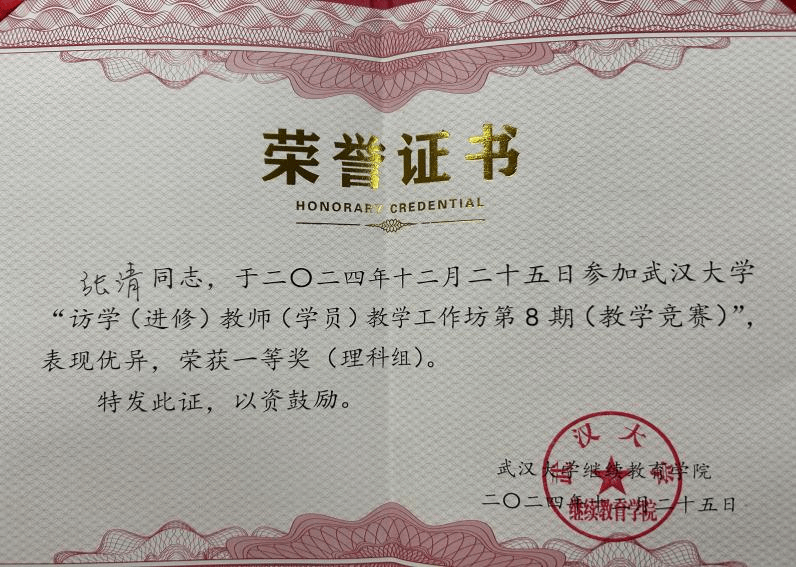 此次获奖不仅是对张清老师个人教学能力的肯定,也是对我院教学质量和师资水平的认可。我院将继续秉承“厚德载物、认知践行”的教育理念,不断提升教学质量和水平,为培养更多高素质人才贡献力量。(审稿:杨旭)
