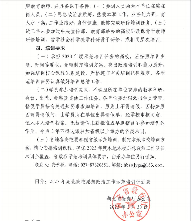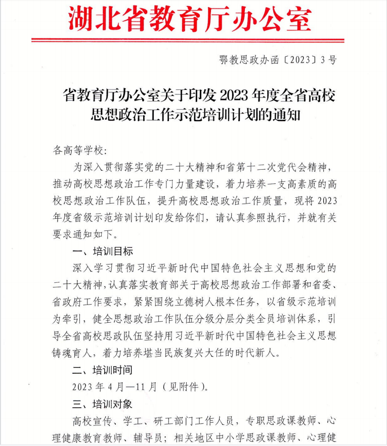 省教育厅办公室关于印发2023年度全省高校思想政治工作示范培训计划的通知